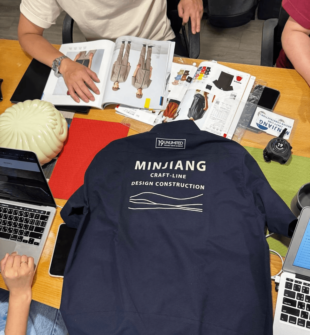 長期與日本多間制服廠商合作的經驗,讓 19 UNLIMITED 能精準掌握不同廠商的擅長之處。考量到民匠的擁有許多國際客戶,並且與時尚產業長期合作,在挑選制服款式時,除了機能性,也特別重視穿著時的整體外觀與質感。