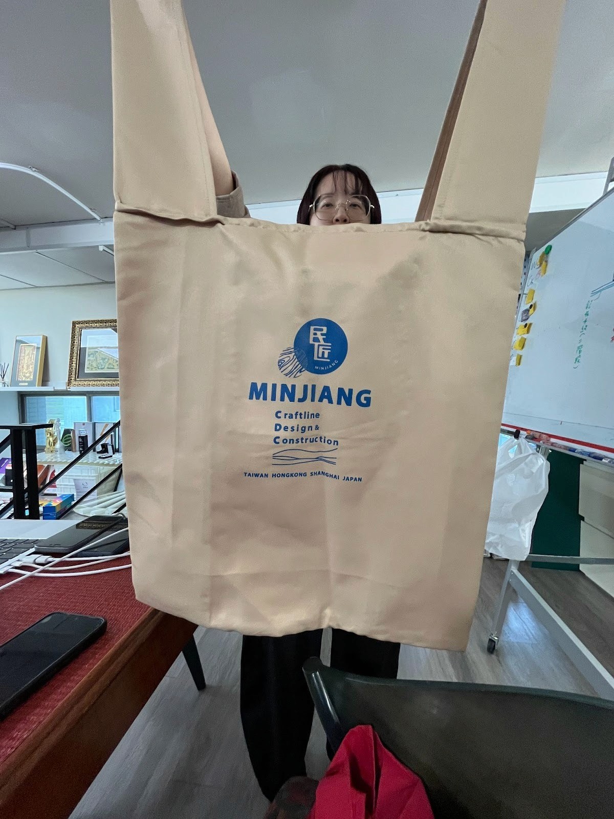 除了各式制服以外,也製作了民匠週邊購物袋,平時可捲起收納,展開後的大容量方便平時現場走動把所有工作傢俬都裝進去。